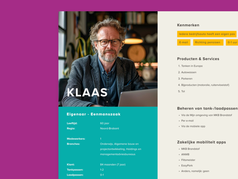 MKB Brandstof helpt ondernemers met slimme mobiliteitsoplossingen, zoals tankpassen en laadoplossingen, zodat zij zich kunnen focussen op hun bedrijf. Om de dienstverlening verder te verbeteren en klanten nog gerichter te bedienen, was er behoefte aan diepgaand inzicht in de verschillende klantgroepen. Maar hoe zorg je ervoor dat persona’s niet slechts een marketingoefening blijven, maar écht bijdragen aan betere klantervaringen en strategische beslissingen?