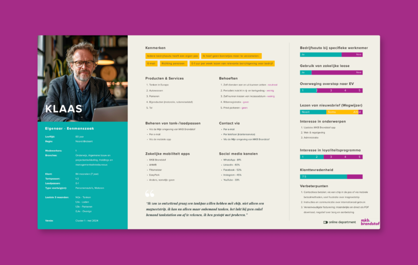 Met de nieuwe datagedreven persona’s heeft MKB Brandstof een helder beeld van wie hun klanten zijn, wat hen drijft en hoe de dienstverlening hierop afgestemd kan worden.